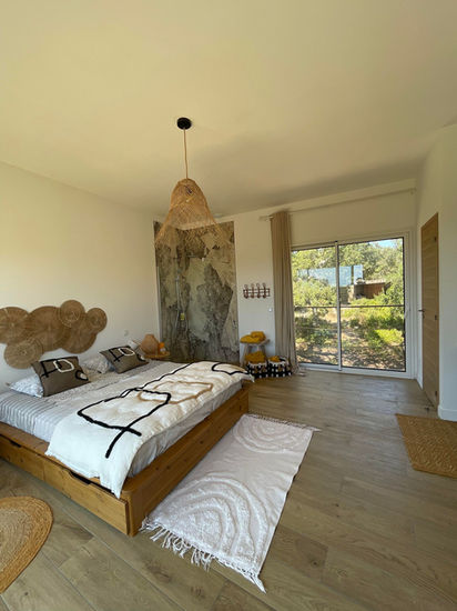 Au fond du maquis, se cache une cabane complètement autonome. Vous y trouverez une chambre, une salle de bain, des toilets et une cuisine extérieure.